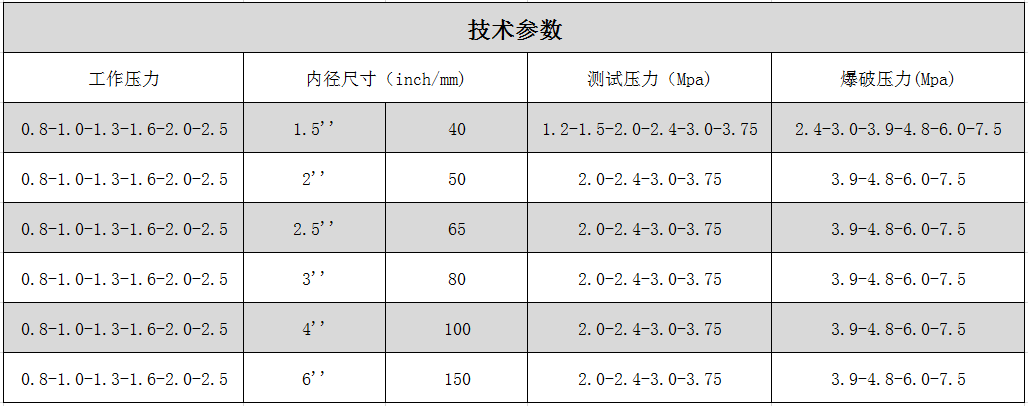 1. 該水帶編織層采用優(yōu)質(zhì)滌綸長絲編織,襯里和外層通用PU,PVC,EPDM,橡膠,提供加強(qiáng)筋一體成型